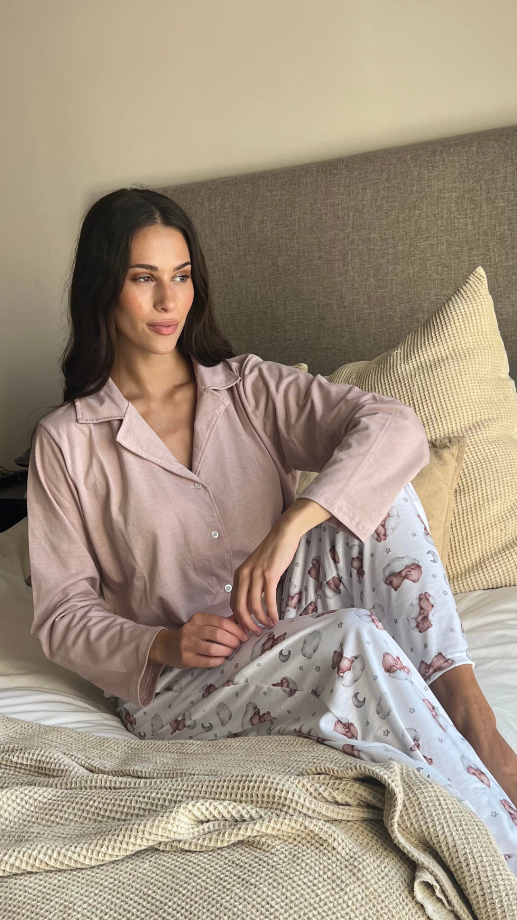¡Dale un toque moderno a tu look de casa con nuestro pijama camisero de corte suelto! Este conjunto, que combina un pantalón recto y una remera tipo camisa con botones, es la elección perfecta para sentirte cómoda y a la moda.